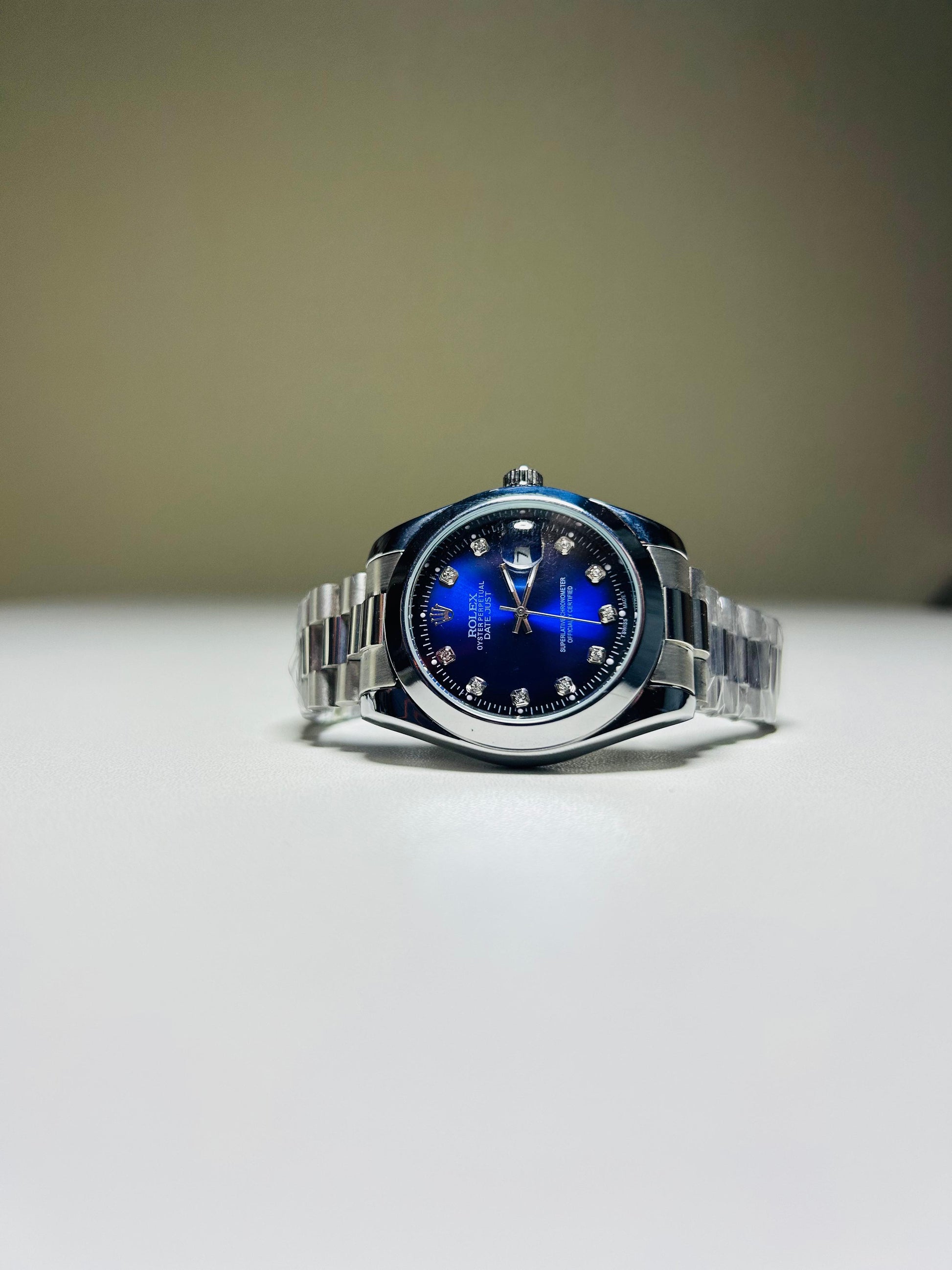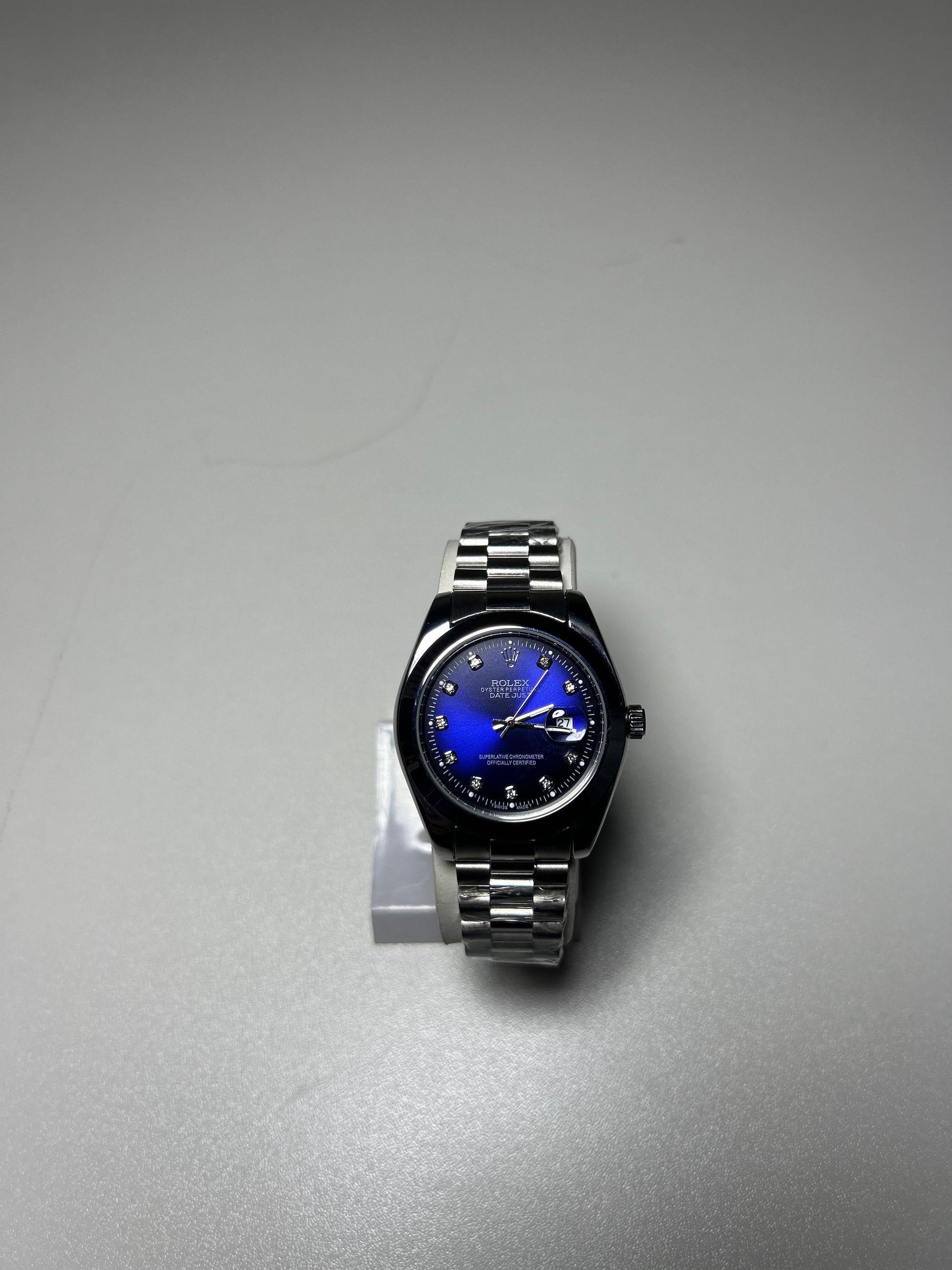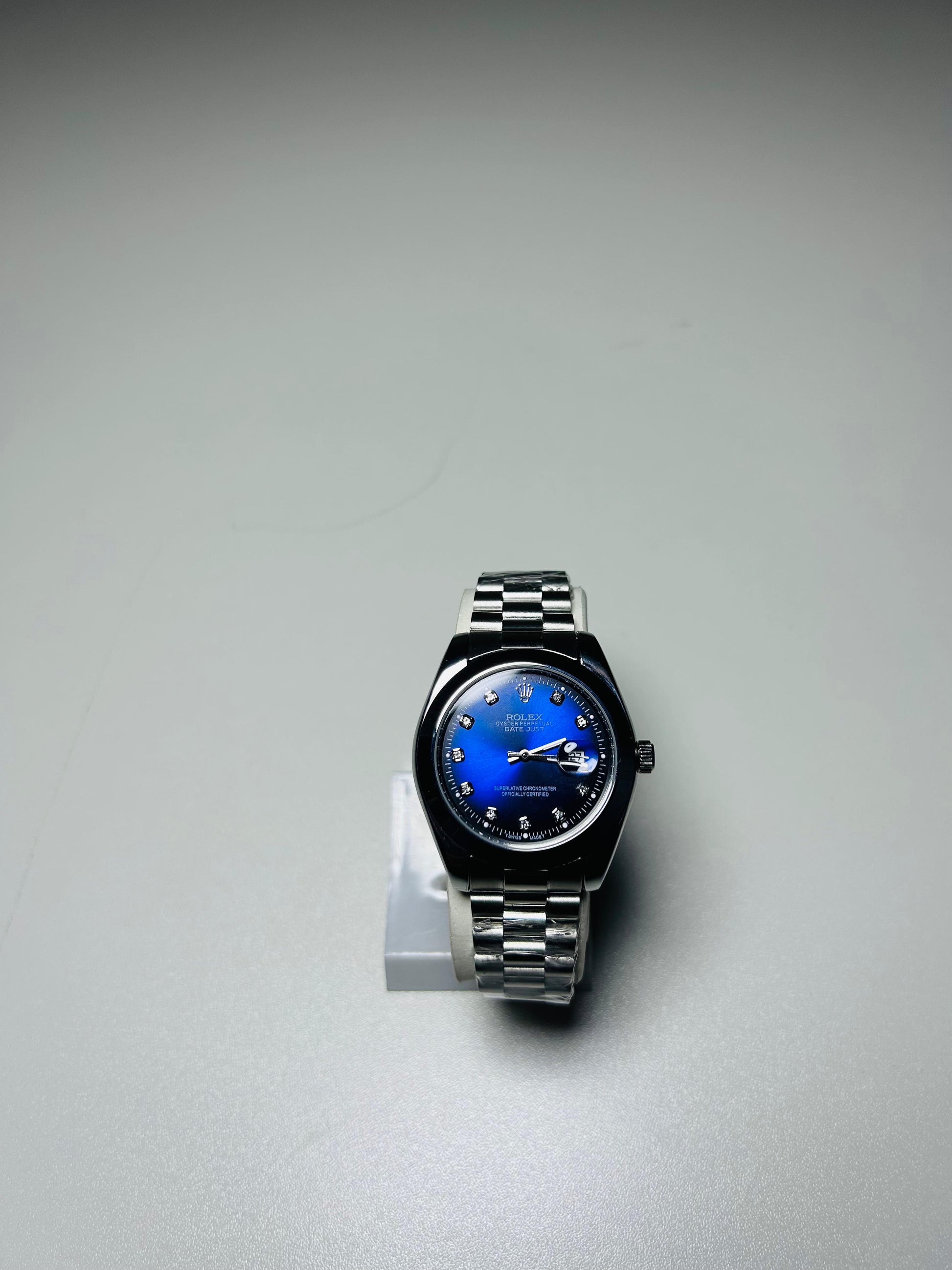 Step into the world of luxury with this exclusive Rolex timepiece. The bold blue gradient dial ❤🔥 paired with diamond-inspired hour markers